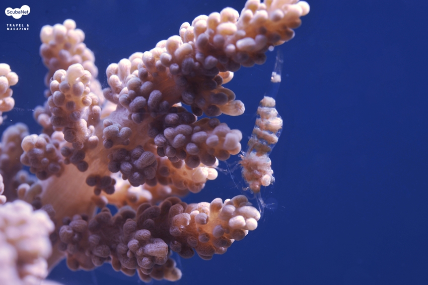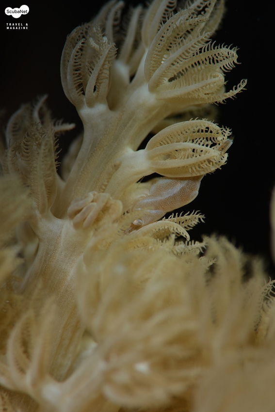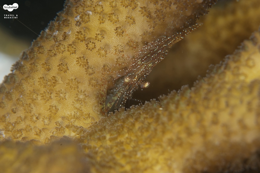 경산호 속에 숨어있는 공생 새우최근 필자는 사진의 결과물과 상관없이 피사체를 찾으며 관찰하는데 많은 재미를 느끼고 있다. 어떤 생물이 어떤 환경에서 서식하며 어떻게 살아가는지 혹은 어떤 생태학적 특성이 있는지를 관찰하는 것은 마크로 사진 촬영의 흥미를 더 일으키게 한다. 최근 국내외 마크로 촬영가들이 자주 다니는 다이빙 사이트에서는 아주 능숙하게 피사체를 잘 찾는 가이드들이 피사체를 찾아주면 촬영하게 되는데 필자의 경우도 그런 과정을 통해 촬영을 하게 되었지만 가이드가 찾아주는 피사체보다도 어쩌다가 스스로 찾은 피사체를 촬영할 때의 감동은 비교할 수없이 크다고 하겠다. 물론 필자도 노안이 와서 가이드가 5가지의 피사체를 찾을 때 한 종류 정도 밖에는 찾지 못하지만 그 것은 가이드가 찾아주는 10가지 이상의 가치를 스스로에게 부여하고 싶다. 그래서 최근에는 스스로 피사체를 찾는 것에 더 흥미를 느끼는 것 같다는 생각이 든다. 그러면 어떤 피사체가 가치 있는 피사체일까라는 질문을 스스로에게 할 수 있겠지만 그것은 개인이 스스로 판단해야 할 것이다. 무조건 희귀종을 찾는 것은 일반인의 눈을 가진 다이버에게는 운동장에서 바늘 찾는 격이 될 것이다.