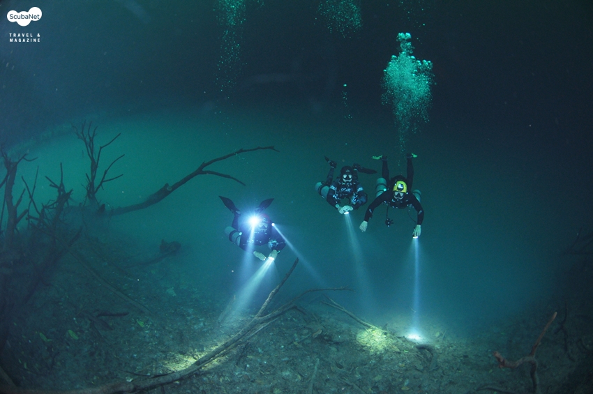 ‘수중의 강’이라 불리는 세노테 안젤리타(Angelita)를 탐험하는 동굴 다이버들