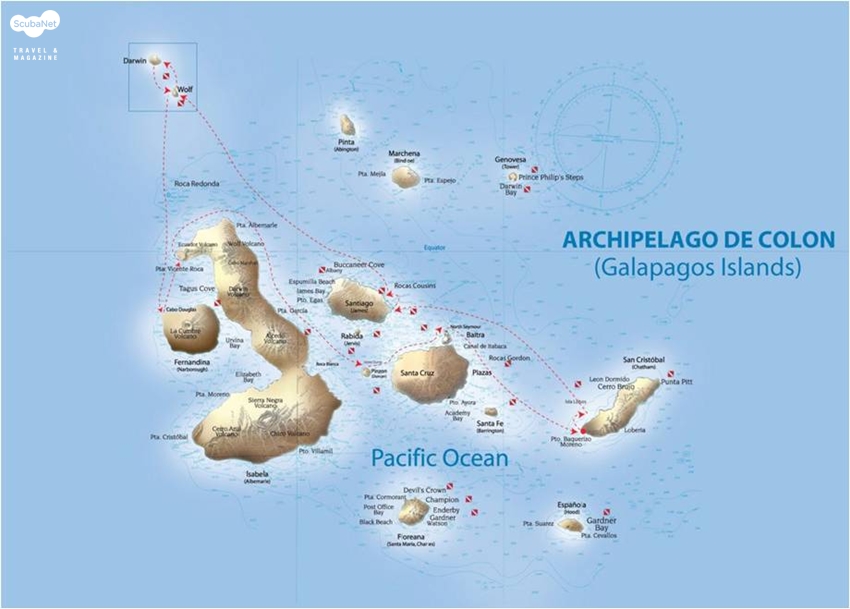 갈라파고스의 다이빙 전문 리브어보드 보트들의 주 목적지가 북쪽의 울프섬과 다윈섬이기 때문에 리브어보드 보트들은 3일 정도를 그쪽에서 머물기 위해 나머지 일정은 가고 오는 길에 적당한 곳을 거치면서 다이빙을 하게 된다.