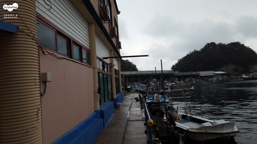 가진항에 자리잡은 백상어리조트는 다이빙 장비를 착용하고 몇 걸음만 옮기면 바로 선착장에서 다이빙 보트를 탈 수