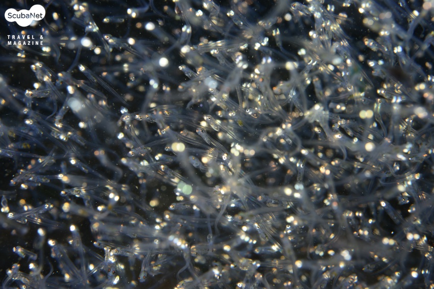 태어났고, 이들이 밤에 빛을 향해 모이다 보니 야간 다이빙에 라이트를 가릴 정도로 밀집하여 회오리를