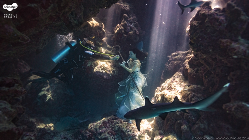 이리 여러 차례 수중촬영 프로젝트를 수행한 경험이 있는 본 웡은 상어와 함께 모델을 촬영하는 것은 모델을 수중