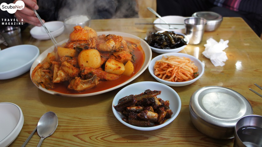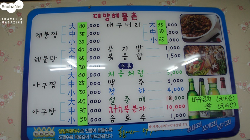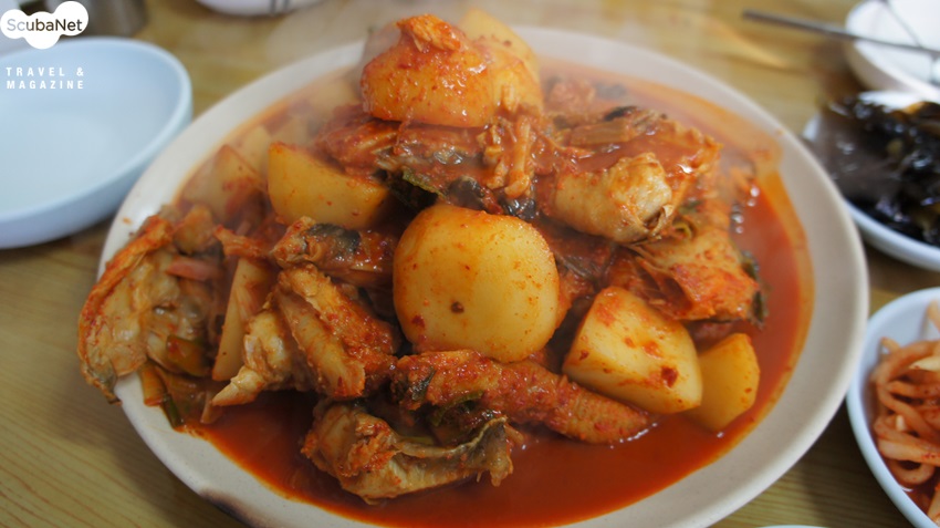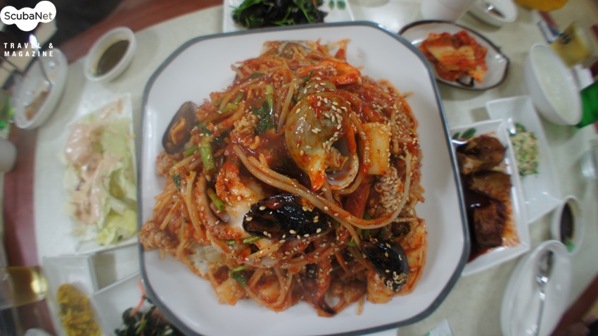 주문진 대양해물촌변화무쌍한 국내바다 다이빙엔 가끔 뜻하지 않게 다이빙을 할 수 없는 상황들이 생깁니다. 그럴 땐 맛있는 음식으로 위안을 삼아야 합니다. 제가 종종 위로를 받는 맛집 강릉 주문진의 대양해물촌을 소개합니다.^^ 찾아가는 길은 네비게이션으로 "대양해물촌" 치면 바로 나옵니다. 입구는 허름한 옛날 가정집 같은 분위기입니다. 요 근래 가격이 조금 올랐지만 해물찜 대(大)로 시키면 어른 다섯 명이 먹기도 충분합니다. 맛깔스런 반찬들은 무한 리필 되는데 그중에 단연 으뜸은 해물파전이며, 코다리나 도루묵 등 철마다 나는 생선을 말려 만든 조림도 있고, 겨울철에는 콜라겐 덩어리인 "도치"를 삶아서 내줍니다. 약주를 즐기시는 분들은 반찬만 놓고도 벌써 한잔씩 기울입니다.메인 메뉴인 해물찜은 가리비에 오징어, 낙지 등등 정말 푸짐합니다!! 아구찜과 대구머리찜도 예술입니다. 찜을 다 먹고 나면 역시 볶음밥으로 마무리를 합니다. (^^)/식후엔 소화도 시킬 겸 주문진 구경도 좋습니다. 시장 안에 식당이 있어서 시골장터 풍경을 구경하는 재미도 쏠쏠합니다.제가 스쿠버 다이빙하는 분들 오면 꼬옥 써비스 많이 달라고 주인 아주머니께 이야기해 놓았으니 들리시면 자랑스럽게 "다이버"라고 말씀해 주세요. 모두 맛있는 것 많이 드시고 즐따,안따하세요. _(__)_