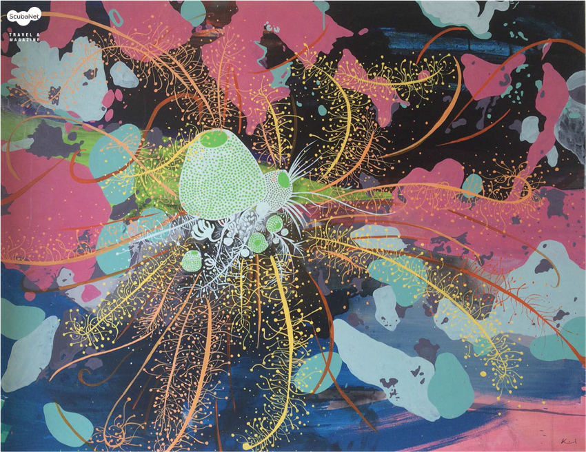 crylic on canvas 53.0x45.5 기억수온이 찬 대신 물이 맑고 해초들이 많이 자라 있다.
