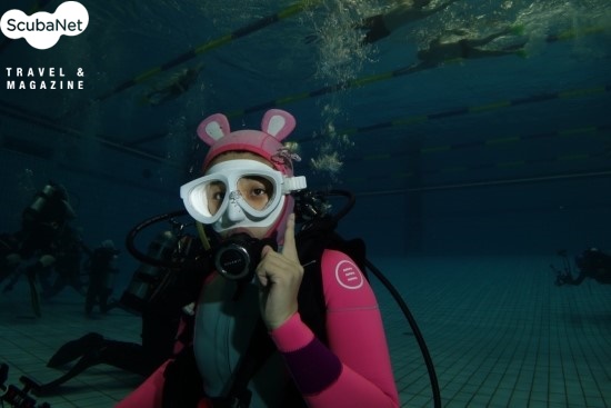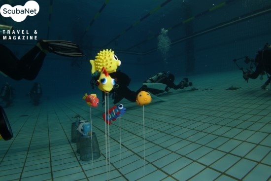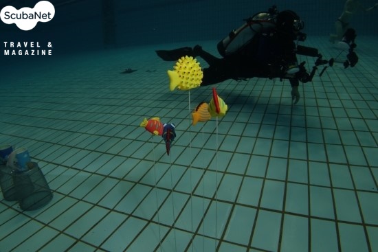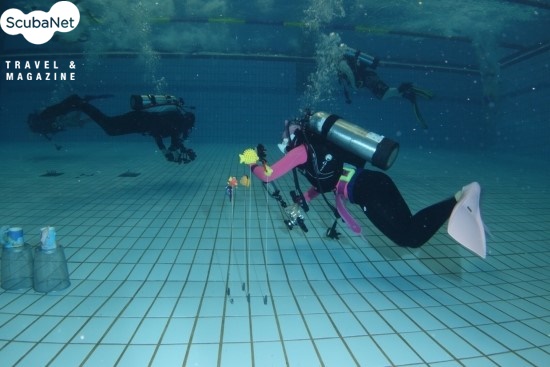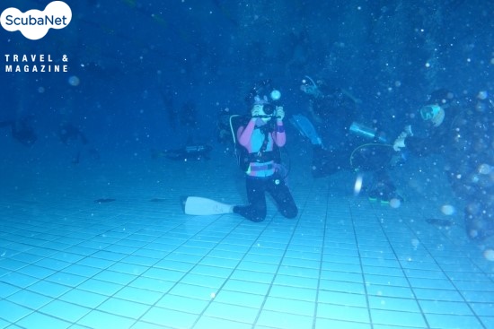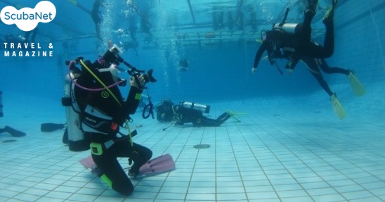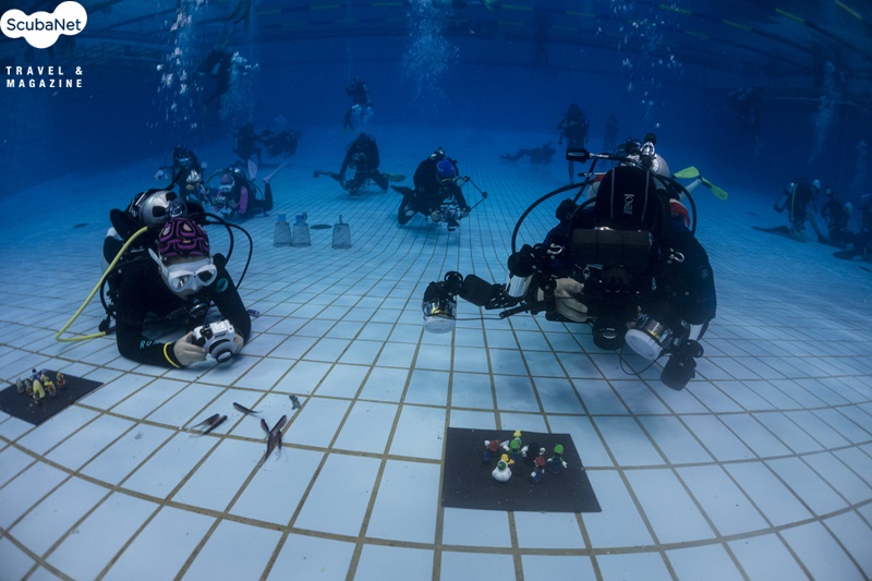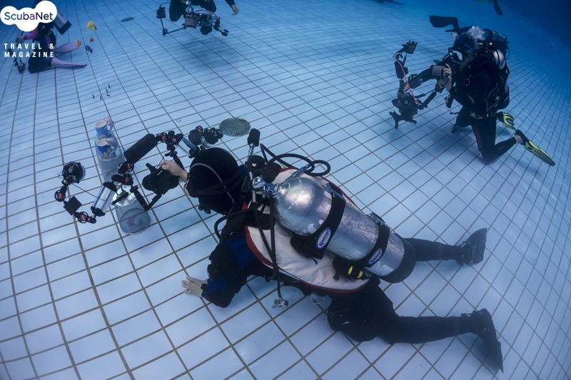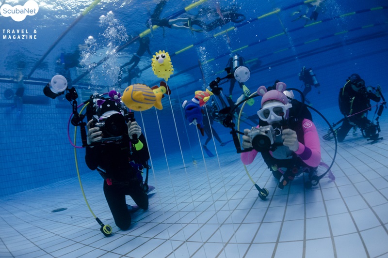 수영장에서 모형 피사체를 놓고 촬영에 열중하는 다이버들2014년 5월, 오픈워터 다이버를 시작으로 아직 100로그도 찍지 못한 초보 다이버ㅠ-ㅠ