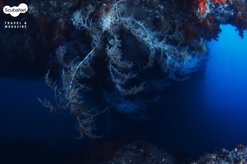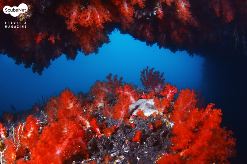 필자 역시 화순에서 다이빙할 때는 제1호 수중올레길로 지정된 아치는 꼭 찾아간다. 아치 주변의 절벽을 따라 연산호와 진총산호들이 군락을 이루고, 아치에서 아래를 향해 자라고 있는 연산호들은 물때에 따라 피었다 지기를 반복하며, 새하얀 해송도 멋진 자태로 아치의 운치를 더해주고 있다. 또한 계절에 따라 줄도화돔이 아치 아래에 머물고, 어린 전갱이들이 떼를 이뤄 아치 아래를 지나갈 때는 그 아름다움이 최고조에 달하기 때문이다.