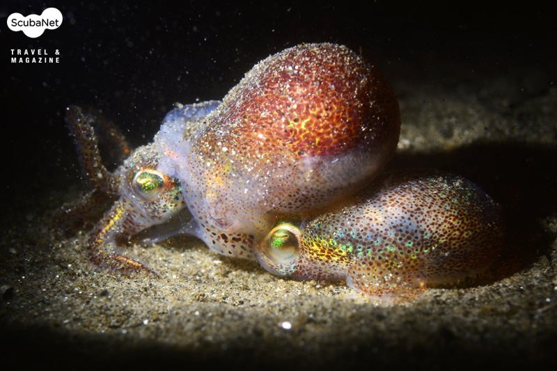 며칠 전 야간다이빙에서는 체장 1cm 정도의 귀골뚜기 두 마리가 한밤의 성스러운 의식을 치르는 모습을 마주한적이