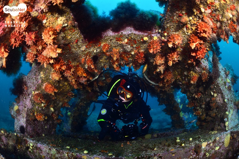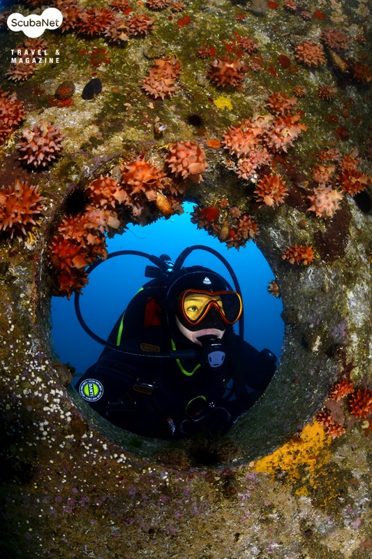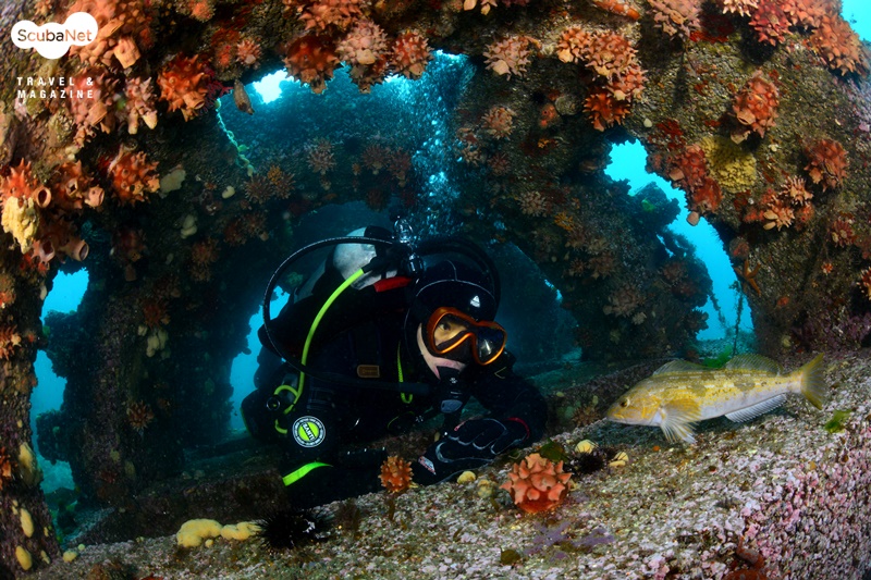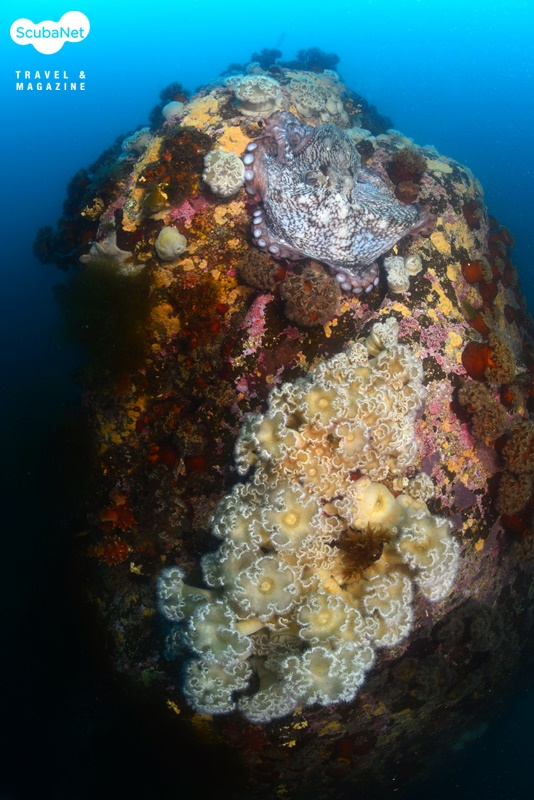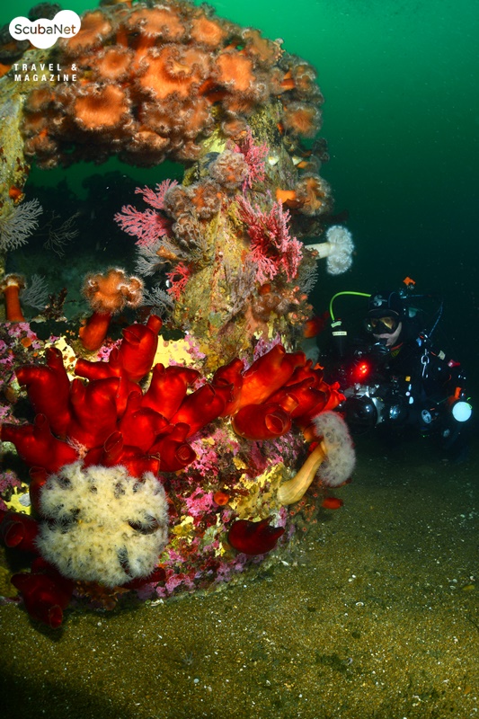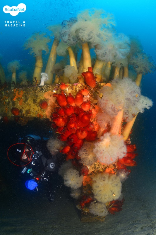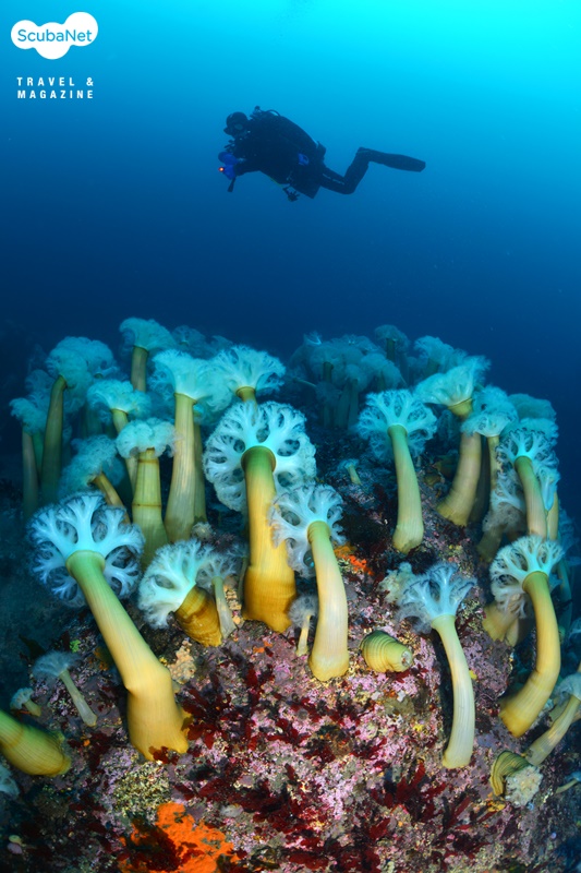누이고 있는 섬유세닐말미잘들고성 지역에서는 30 m권이 4~6℃ 정도이고, 표층은 약 13℃ 정도로 온도 차가 크다. 때문에 깊은 수중에서는 여전히 새하얀 섬유세닐말미잘들이 활짝 핀 장관을 볼 수가 있기에 그나마 추위를 감내하며 다이빙을 한다. 수온이 오르면 한동안 접할 수 없는 풍경이기 때문이다.