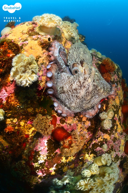 군락 위에 자리잡고 앉아 있는 문어