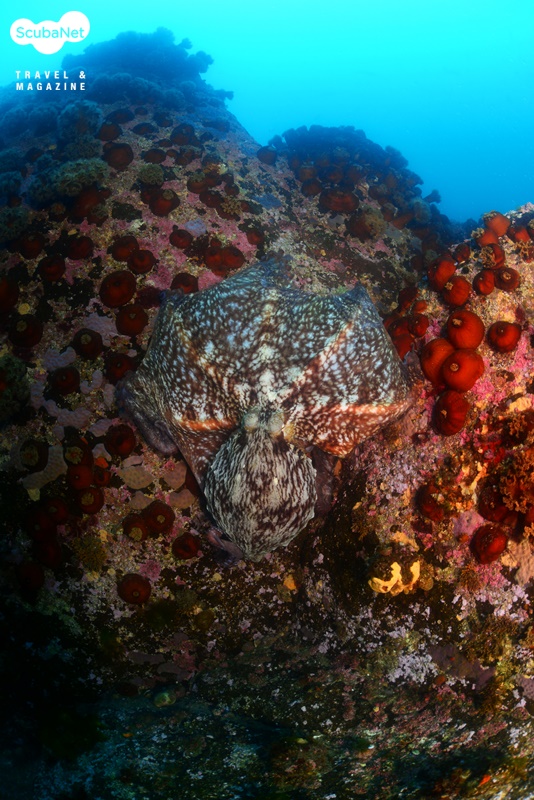 며칠 전에는 약 10Kg 가까이 되어 보이는 대왕문어가 바위아래서 곤히 잠을 자는
