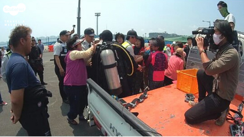 일어났다. 현장에는 다이빙 업체들의 신고를 받은 경찰과 해경 그리고 시 공무원들까지 나왔지만 해녀들과