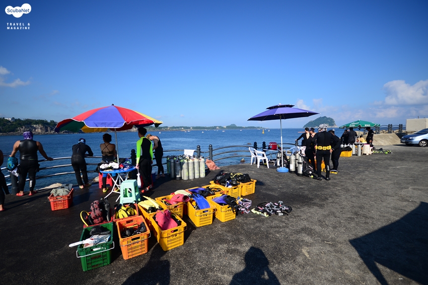 인근 스쿠버 다이빙 숍들에게 서귀포 동방파제는 안전하고 편하게 초보자 교육과 체험 다이빙을 진행할 수 있는 곳으로