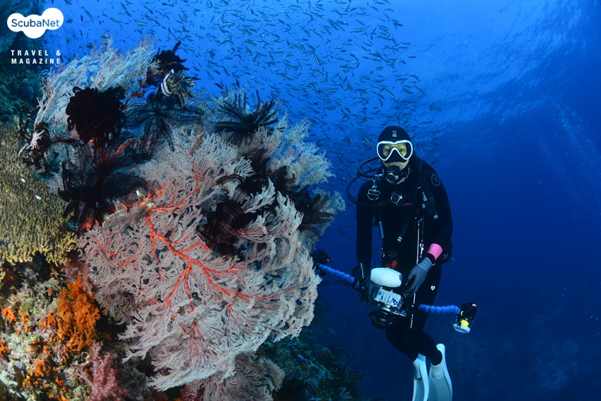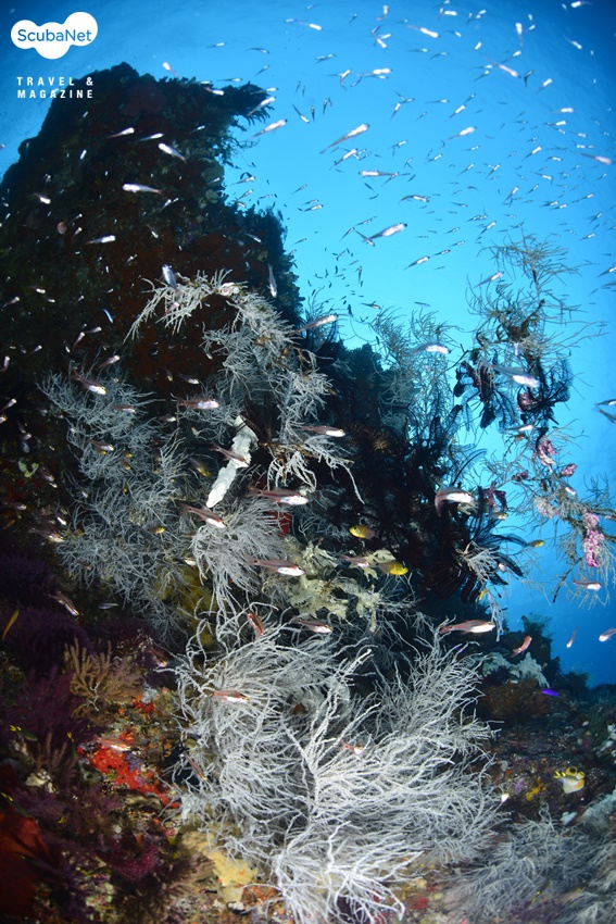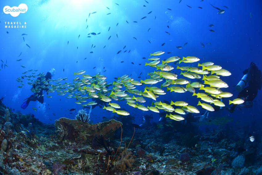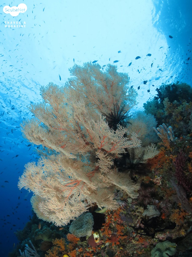 모든 포인트에 대한 설명을 해주지 못해 아쉽지만 지금까지 봐오지 못했던 화려하고 밝은 색상의 대형 산호 군락과 그와 어우러지는 물고기들, 파도에 깊게 패인 섬 아래로 엄청난 멸치 떼가 지나고다양한 종류의 대물을 볼 수 있고 하늘에 떠있는 멋진 구름을 보며 출수하는 멋진 곳. 물론 조류 센 곳도 많아서 마스크가 벗겨질 정도의 조류도 느낄 수 있는 곳~ ^^
