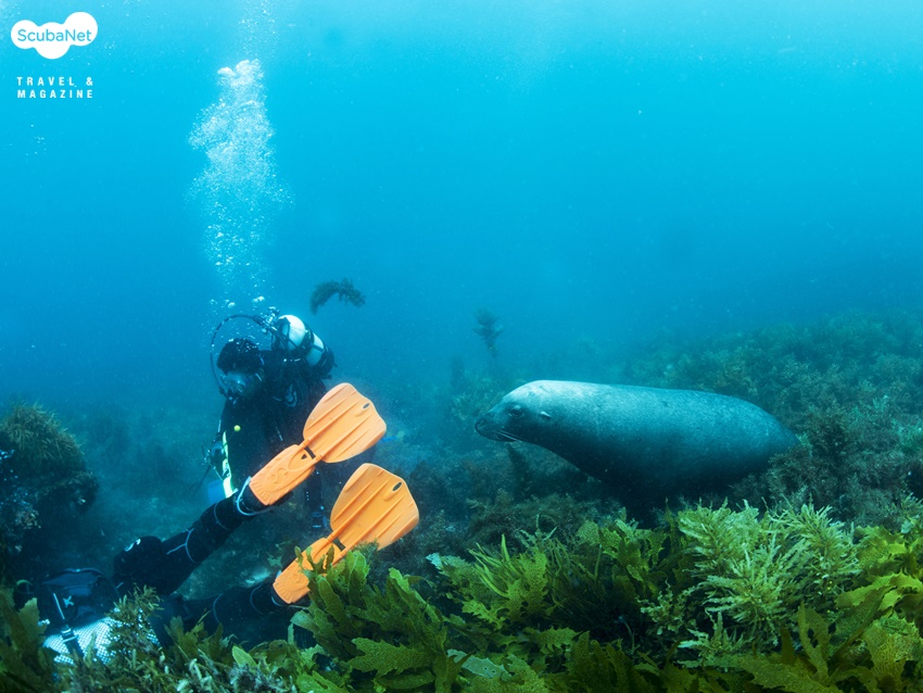 다이버들이 바다가재를 채집하는 동안 옆에서 기다리고 있는 바다사자대부분의 레크리에이션 다이버들의 다이빙