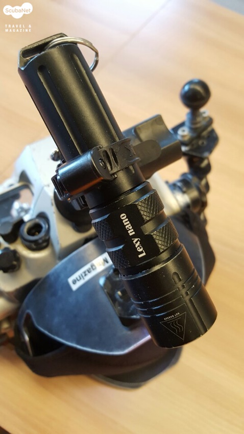 어댑터를 이용하여 카메라 하우징에 장착하여 타겟라이트로 활용했다. 이번 코모도 리브어보드 투어에서 렉시나노를 실제 사용해 봤는데 크기가 작아 백업라이트로 상시 휴대하다가 주간