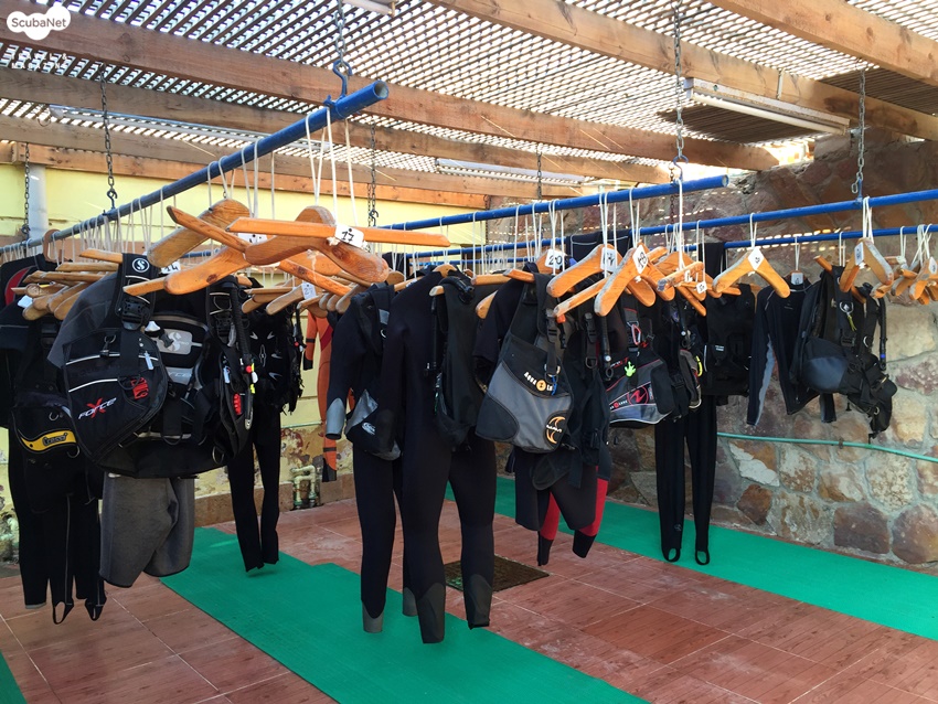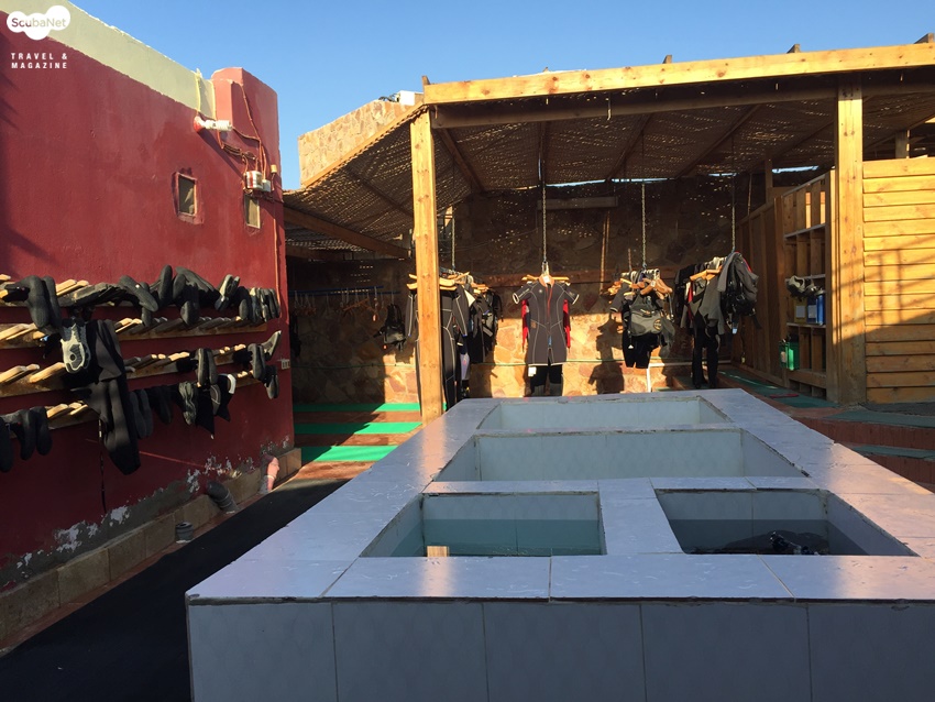 번호로 준비되어 있다. 장비를 세팅해 놓으면 카트에 실어 포인트에 날라준다. 다이빙 후에 장비는 직접 세척하여 지정 번호에 정리해두면 오케이. 세척수조도
