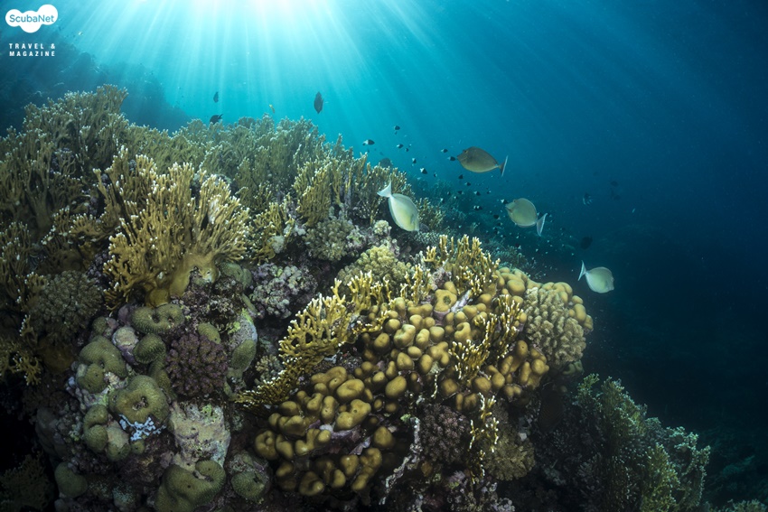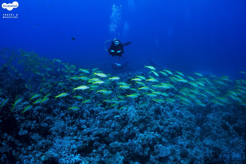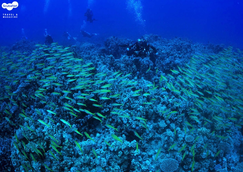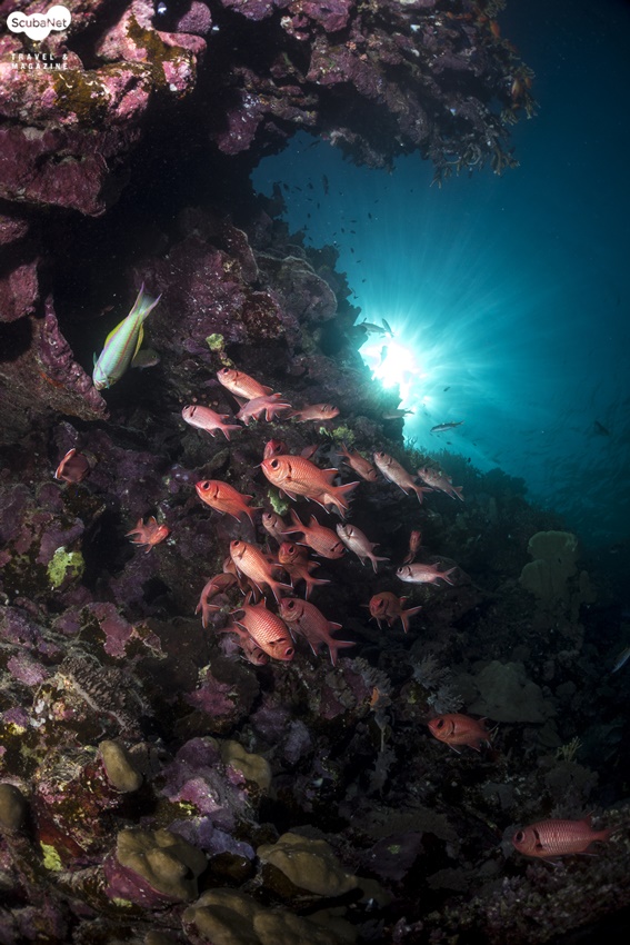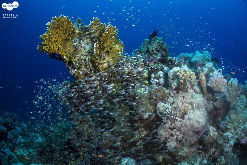 피나클과 케번이 섞여있는 산호지형에 구석구석 물고기 무리가 자리를 잡고 있다. 눈이 큰 솔저피시 무리, 노란색 스내퍼 무리, 서전피시와 함께 산호 피나클마다 주황색 안티아스