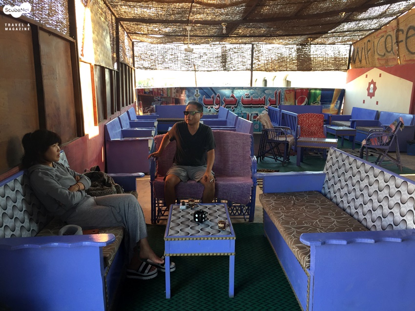 3시간 반정도 해안을 낀 사막도로를 달려 마르사알람으로 내려간다. 중간에 들린 간이휴게소가 정겹다. 잘게 갈은 원두를 끓여 여과하지