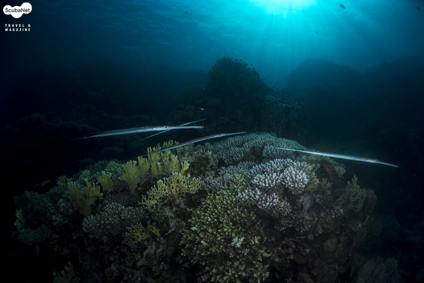 유영하는 다이빙으로 중간중간 경산호로 뒤덮인 피나클이 멋지다. 중간중간에 줄지어 서있는 피나클 상단에는