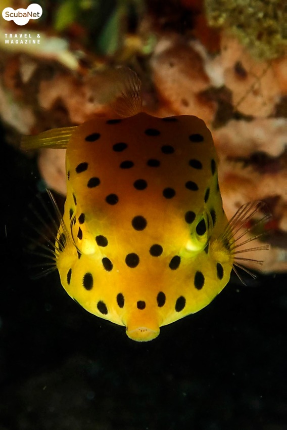 산호 아래에 숨어있는 노랑거북복을 외장 스트로브를 TTL모드로 설정하여 접사모드로 촬영하였다. Anilao, Philippines. Olympus TG4, Olympus housing, 2x Olympus UFL-3 strobe RC, 수중마크로 mode, f6.3, 1/200s, ISO 200
