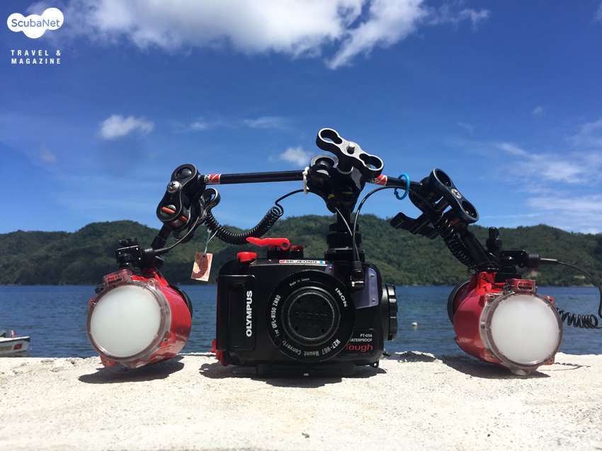 피쉬아이렌즈 UFL-M150 ZM80와 2개의 S-2000을 세팅하였다. 스쿠버넷 매거진 2016년 11월호에 소개된 콤팩트 디지털 카메라 사진교실의 정상근