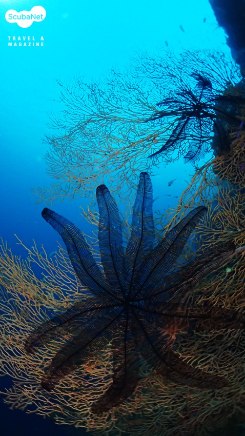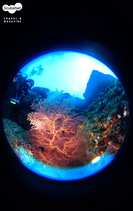 부채산호 위의 바다나리. F6.3, 1/500, ISO800지난 11월 TG4에 이논