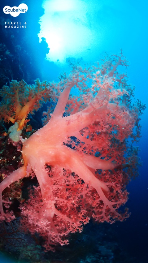 산호 가지에 붙은 개오지가 렌즈 바로 앞에 오도록 접근했다. F16, 1/80s, ISO800
