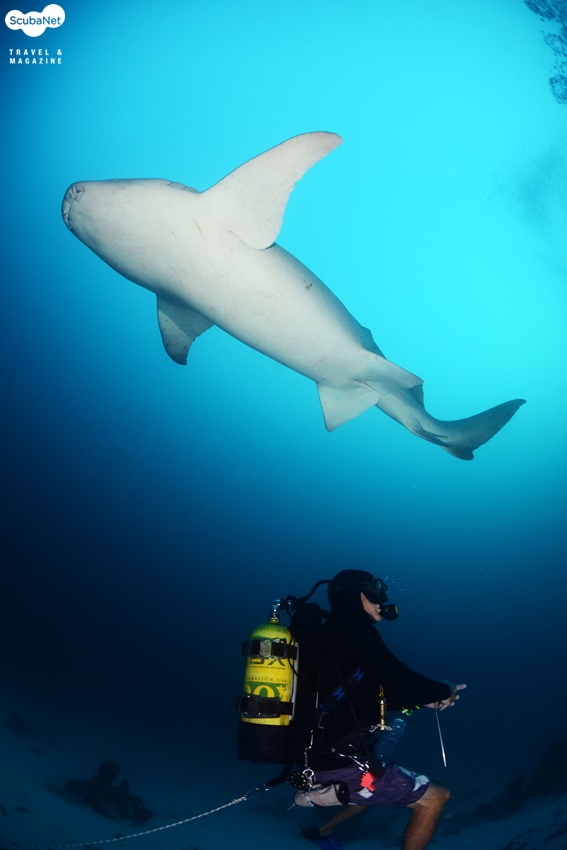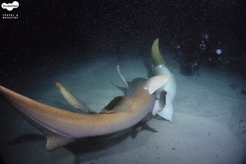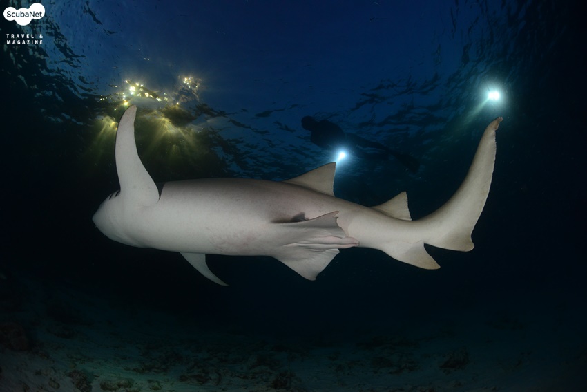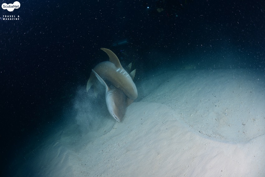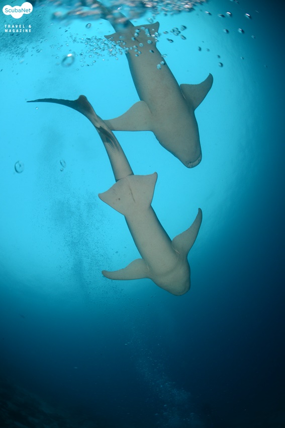 상어와 은행나무를 ‘화석생물’이라 한다. 처음 지구상에 나타난 이후로 거의변화가 없어서이다. 그러면 상어와 은행나무는 어느 것이 오래 되었을까? 은행나무라고 생각하기 쉽지만 답은 상어이다. 상어는 지구에 오랜 시간 동안 존재했기에 다양한 형태를 가지고 있다. 뿐만 아니라 번식방법도 다양하다.암컷 상어 혼자서 새끼상어를 낳는 ‘처녀생식’도 보고된 바가 있고, 알을 낳는 난생, 암컷 상어가 출산하는 난태생과 태생도 있다. 자궁과 같은 암컷 상어의 몸 속 기관에서 수정란을 보호하는 난태생과 태생의 구분은 어떻게 할까? 새끼상어가 자라는 동안 어떻게 영양분을 조달하는가에 따라 구별한다. 난태생은 수정란이 암컷 상어와 어떠한 연결이 없이 알 자체의 영양분(난황)으로 성장하여 어미상어의 몸 밖으로나온다. 태생은 아기가 탯줄로 엄마의 태반에 연결되듯, 수정란이 어미상어와 연결이 되어 영양분을 공급받아 성장한다. 너스상어(nurse shark)는 약 4 m 정도까지 자라며, 보통 1m ~ 40 m 사이의 얕은 수심에 서식한다. 낮에는 활발하게 유영하지 않으며,연안의 산호초 주변이나 모래바닥의 은신처, 맹그로브 뿌리 주변에서 쉰다. 밤이 되면 먹이 활동을 시작하고 짝짓기도 한다. 먹이는 성게, 새우, 오징어, 문어, 조개 등과 작은 물고기를 먹는다.너스상어는 난태생으로, 어미 뱃속에서 부화하여 자란 후출산된다. 대부분의 상어는 지속적으로 헤엄쳐야만 물이 아가미를통과해 호흡이 가능하다. 상어지느러미 요리를 위해, 상어를 잡으면 지느러미를 자르고 살아있는 채로 바다에 던져 버리는 경우가 많다. 지느러미가 없어 헤엄치지 못하는 상어는 결국 질식해 죽게 된다. 물고기가 물에서 익사하게 되는 것이다.그러나 너스상어는 가만히 바닥에 정지해 있어도 입과 아가미를 통해서 호흡이 가능하다. 성질이 유순하여 사람들을 봐도 피하지 않고 다가간다고 한다. 몰디브에서 본 너스상어들도 다이버를 스쳐지나 듯 가까이 다가 왔었다. 조개의 패각을 깨뜨릴 정도로 강력한 턱을 가진 너스상어의 이름에 대한 유래는 확실하지 않다. 설 중의 하나는 너스상어가 먹이인 조개를 찾기 위해 모래를 파헤칠 때 나는 소리가 어린 아기를 재우거나 어를 때의소리와 비슷한 것에서 유래했다고 한다(아기를 어르거나 재우는 것 등을영어로 ‘nursing baby'라고 한다). 너스상어의 짝짓기에 대한 내용은 다음과 같다. 해질 무렵에 몰디브의 바아부 아톨의알리마타 리조드 제티에서 입수하였다. 바닥은 모래였고, 수심은 25 m 정도였다. 어두워진 후 너스상어의 짝짓기가 이루어졌다. 아쉽게도 구애행동 등 처음 시작 장면은 보지 못하고, 암, 수컷이 교접한 상태를 보게 되었다. 모래바닥에 엎드려서 하는 체위였는데,수컷이 암컷의 지느러미를 물고 몸으로 암컷을 누르면서 클라스퍼를 클로아카에 접속하고 있었다. 암컷은 가만히 있지 않고 계속 달아나려 하였다. 수컷 너스상어가 강하게 암컷의 몸을 제압하지 않으면 자신의 정자를 전달하지 못할 것으로 보였다. 암컷이 수컷을 시험하여 강한 유전자를 얻기 위한 행동으로 추측된다. 상어의 짝짓기 행동에 대한 연구보고는 많지 않다. 아무래도 상어에 대한 두려움,위험성 등이 이유일 것이다. 너스상어는 유순한 편이니 앞으로너스상어의 짝짓기 행동에 대한 관찰보고가 많아지기를 기대해본다.너스상어가 있는 곳에서 다이빙할 경우, 해질 무렵에 입수하면 짝짓기를하는지 관심을 갖고 보기를 바란다. 임주백 박사 연구목적으로 1만회 이상 다이빙한 어류행동생태 전문가