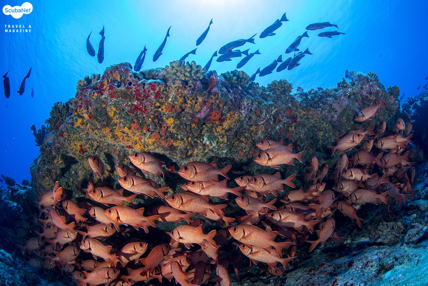 볼 수 있으며, 반대편 고지에는 종종 만타나 상어들이 물살을 거스르며 떠있다. 거기서 재수가 좋으면 5-6m 이상은 족히 되는 거대한 그레이트