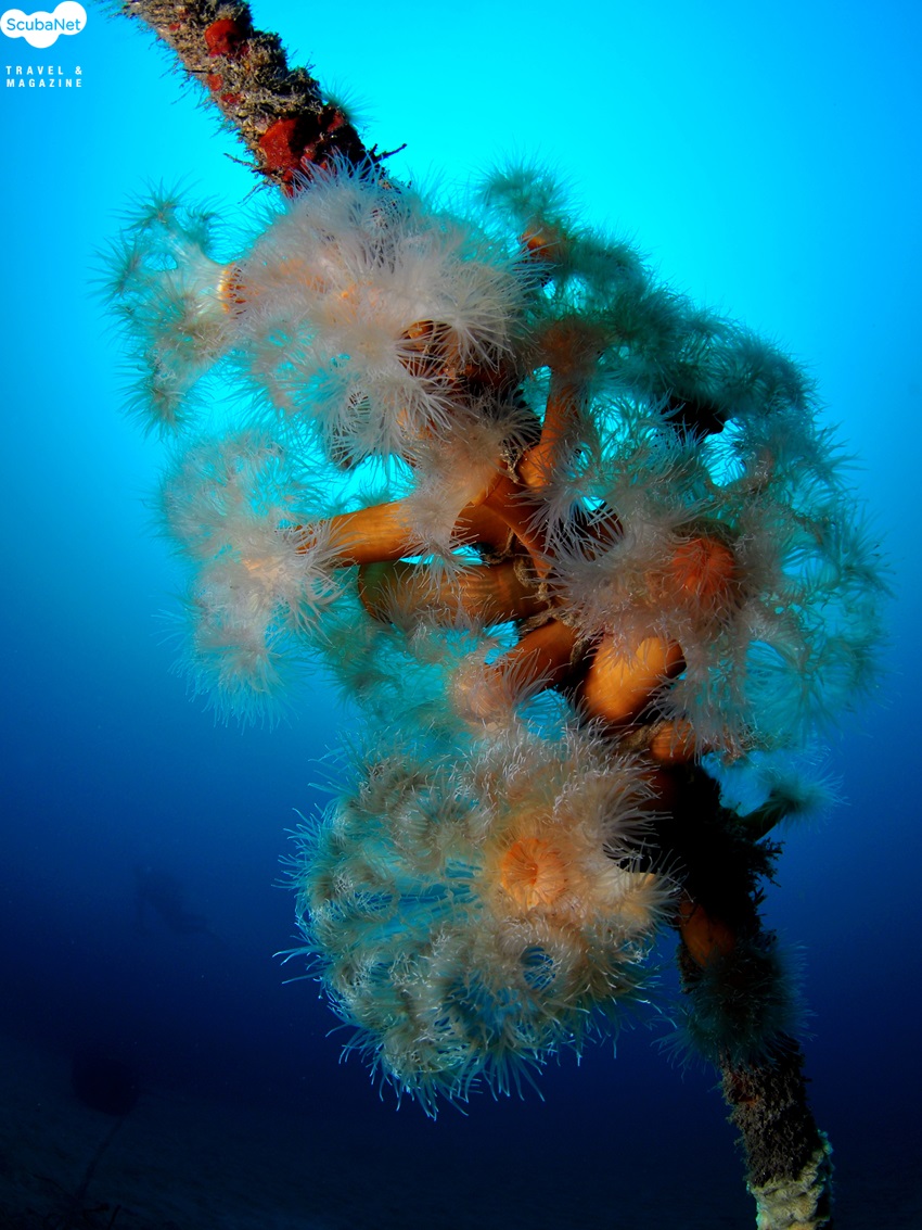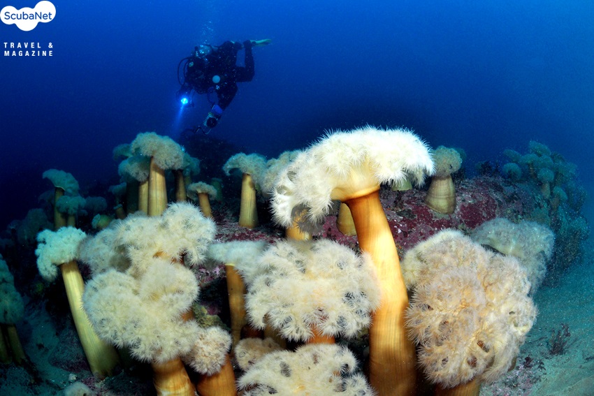 시크릿가든의 인공어초에는 부채뿔산호와 섬유세닐말미잘들이 군락을 이룬다.