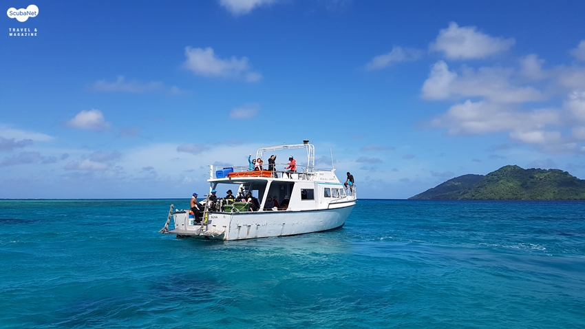 South Pacific Harbour에 도착하여, 펄 리조트 Pearl Resort의 마리나에서 보트를 타고 이동했다. 스피드보트로는 20분 정도 걸렸는데 나중에 리조트의 큰 다이빙 보트로 나올 때는 40분
