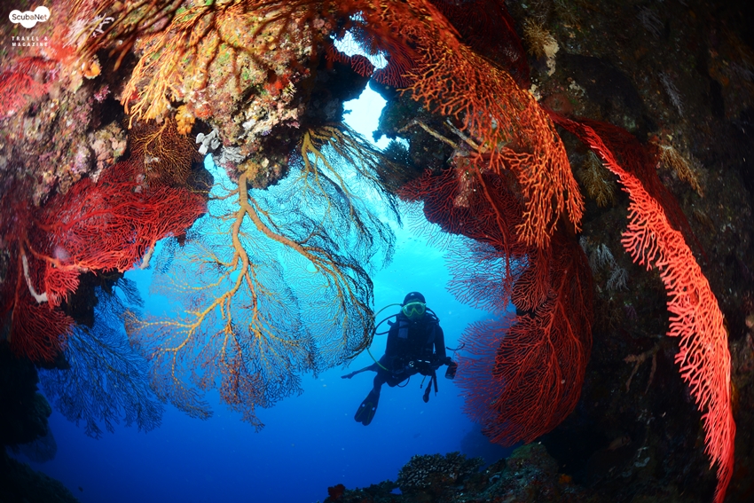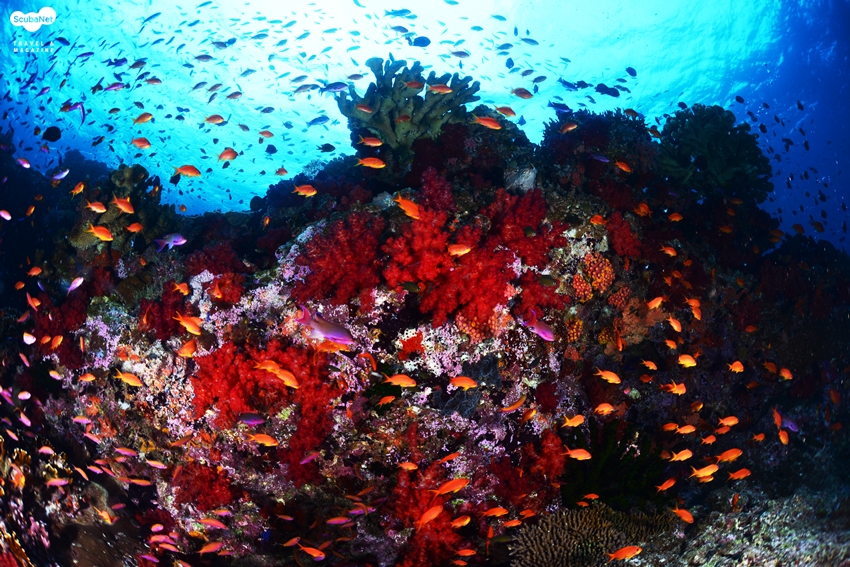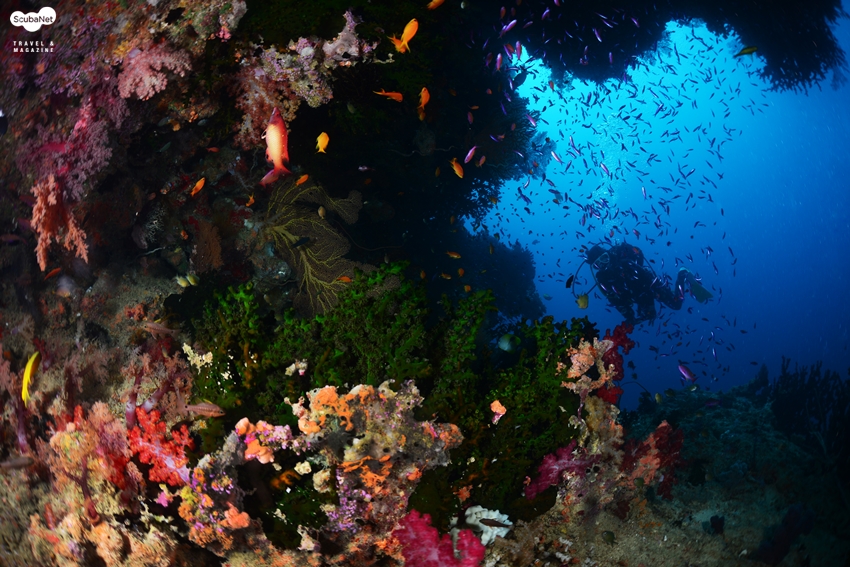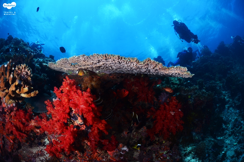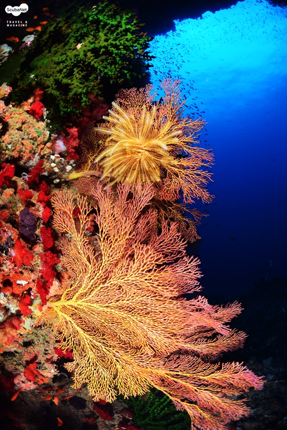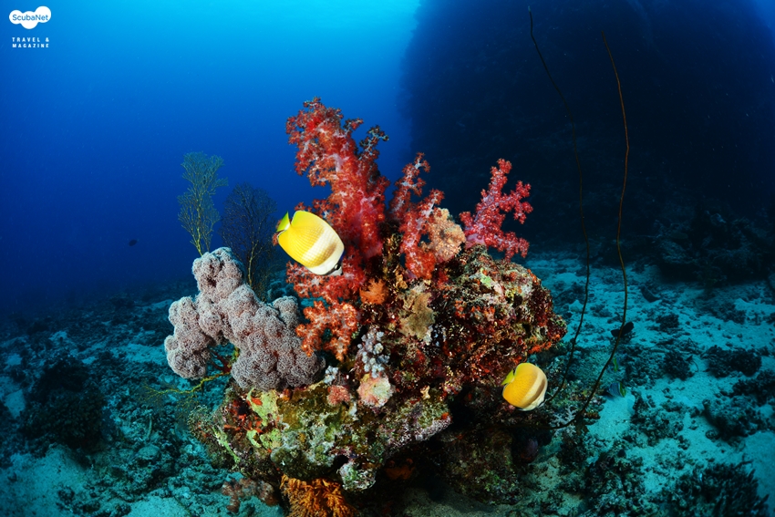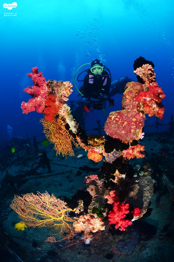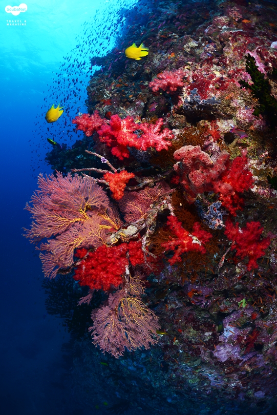 갖고 있다. 봉우리 옆으로 난파선이 하나 있는데 연산호와 부채산호들이 여기저기 붙어 있어서 수중사진을