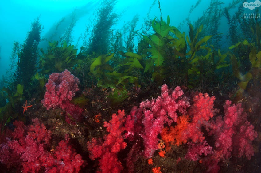 미역과 모자반들이 숲을 이루고 있다. 문섬 불턱에는 여러 가지 색깔을 띤 연산호들이 화려한 군락을 이루고