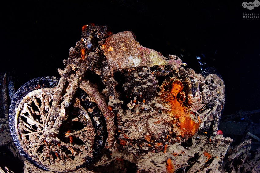 등의 군수물자를 싣고 항해하던 중에 독일 폭격기에 의해 격침된 것이다. 배는 수심 30m에 가라 앉아 있는데 조류가 조금 있는 편이라서 하강라인을 잡고 내려가야 했다. 선실 진입을 하게 되면 약 23m~26m, 15분~20분 다이빙을 해야 하기 때문에 각자의 무감압 한계 시간에 신경을 써서 다이빙을 해야 한다. 필자도 다이빙을 하다 보니 감압 다이빙을 할 수밖에 없었는데 이점에 유의하여 다이빙해야 할 것이다. 이곳에는 많은 모터사이클들과 트럭, 타이어, 포탄 등이 세월이 지난 지금도 형태를 거의 유지하고 있다는 점에서 매우 인상적이었다. 더블탱크 및 스테이지를 사용하며 계획된 감압 다이빙을 한다면 SS Thistlegorm의