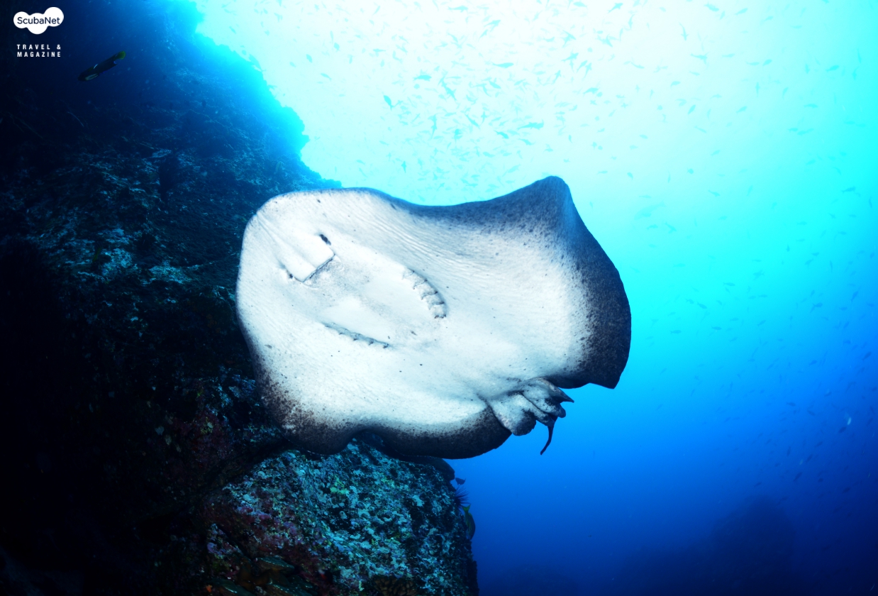 대비하여 다이버들의 뒤를 지켜주는 백가이드가 한명 더 투입되는 곳이었다. 마뉴에리타 섬 자체만 해도 3군데의 포인트로 나누어서 다이빙이 진행되었다. 수심 30m까지 절벽으로 떨어지는 섬의 서쪽 사면을 미드딥 Mid-deep, 섬의