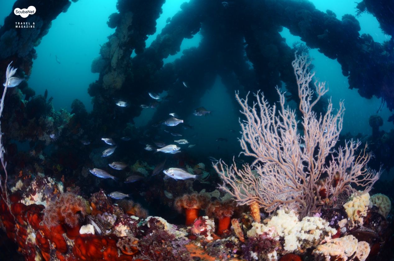 부채뿔산호와 섬유세닐말미잘, 해면 등이 풍성하게 부착되어 있었고, 어초