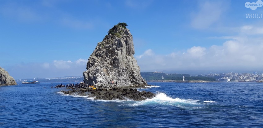 불볕더위로인한폭염이전국을뒤덮고있는한여름에제주도라고다르지않다. 그늘이없으면강렬하게이글거리는한낮의태양빛에모든것이다타버릴듯하다. 그나마물속을들어갈수있는다이버들은더위와태양을피할방법이있지않은가? 이럴때는다이빙을나가는것이가장상책이다. 제주도를찾은육지의다이버들로서귀포항은분주하고, 이들을섬으로실어나를유어선들이줄지어내항을벗어나고있다. 그속에함께어울려문섬새끼섬으로향했다.