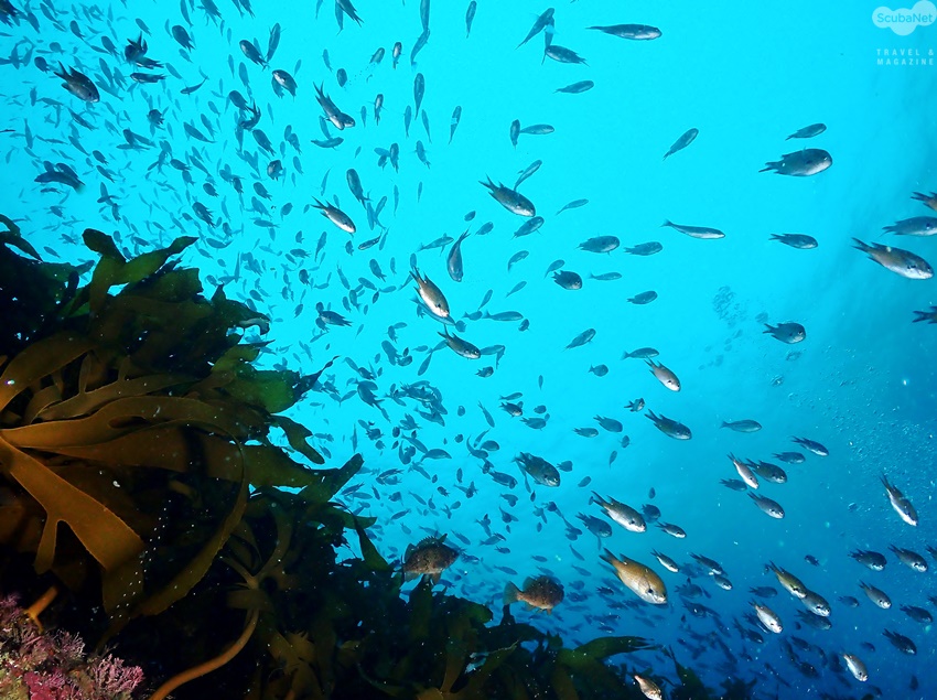 한다. 유난히 많은 자리돔들 사이에 어느새 놀래기가 자리를 차지 하려고 몸을 힘차게 흔들어 대고 있었다. 마치 바다 목장을 보는 듯한 그 환경에 같이 다이빙한 일행들 또한 홍도의 아름다움에 대해 칭찬을 아끼지 않았다.