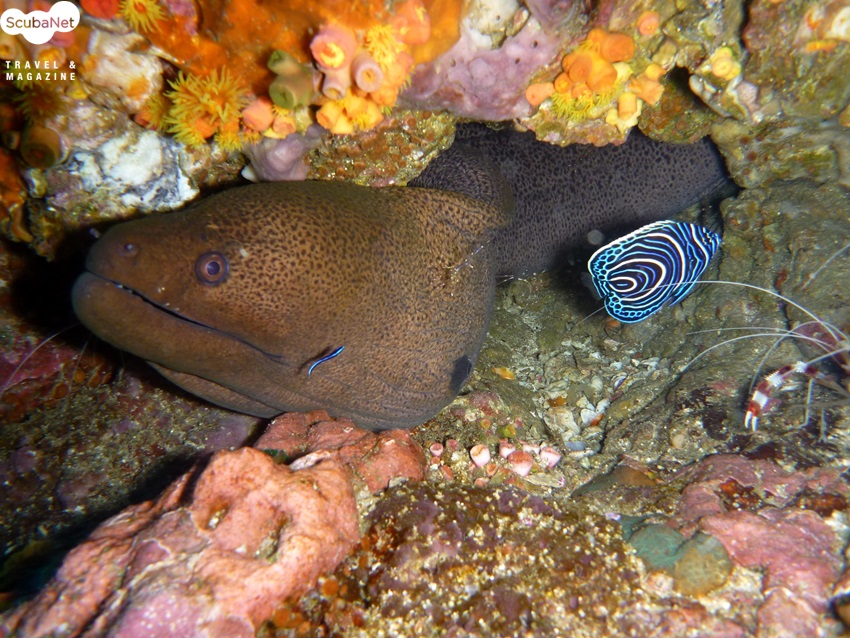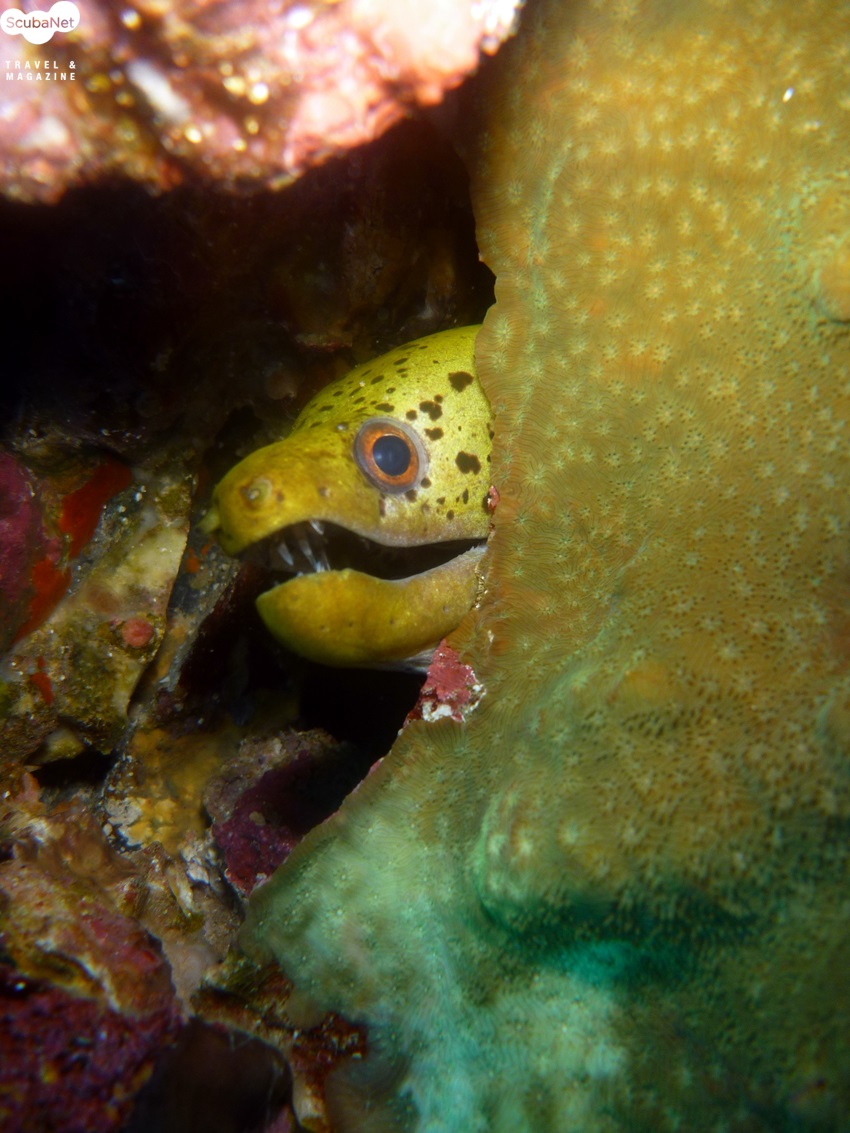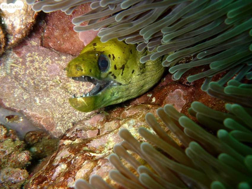 쓰리 아일렛(Three Islets)보웨이 북서쪽으로 30km 정도 떨어져 있는 쓰리 아일렛은 작은 섬 1개와 2개의 바위로 이루어진 포인트이다. 대부분의 리브어보드들이 다이빙에 하루를 투자할 만큼 볼거리가 많고 아름다운 곳이라는데 안타깝게도 내가 갔을 당시에는 시야가 5m 정도로 좋지 않았다. 색색가지의 크고 작은 부채산호들이 곳곳에 있어 시야만 좋다면 무척 예쁠 것 같았지만 일행과 조금만 떨어져도 아무 것도 보이지 않는 상황에 조류까지 있으니 주위를 구경하는 데 집중할 수가 없었다. 기억에 남는 건 스콜피온 피쉬와 라이언 피쉬를 정말 많이 볼 수 있었다는 것과 핀 킥 몇 번 할 때마다 곰치가 보일 정도로 다양한 종류의 곰치들이 잔뜩 살고 있었다는 것. 쓰리 아일렛은 너스 상어를 보기 쉬운 곳으로 유명하다고 한다. 모 어류도감의 너스 상어 사진도 이곳에서 찍은 것이라 하는데 너스 상어가 한 마리 나오긴 했지만 내가 갔을 때에는 산호 밑으로 숨어버려 코끝만 아주 살짝 볼 수 있었다.
