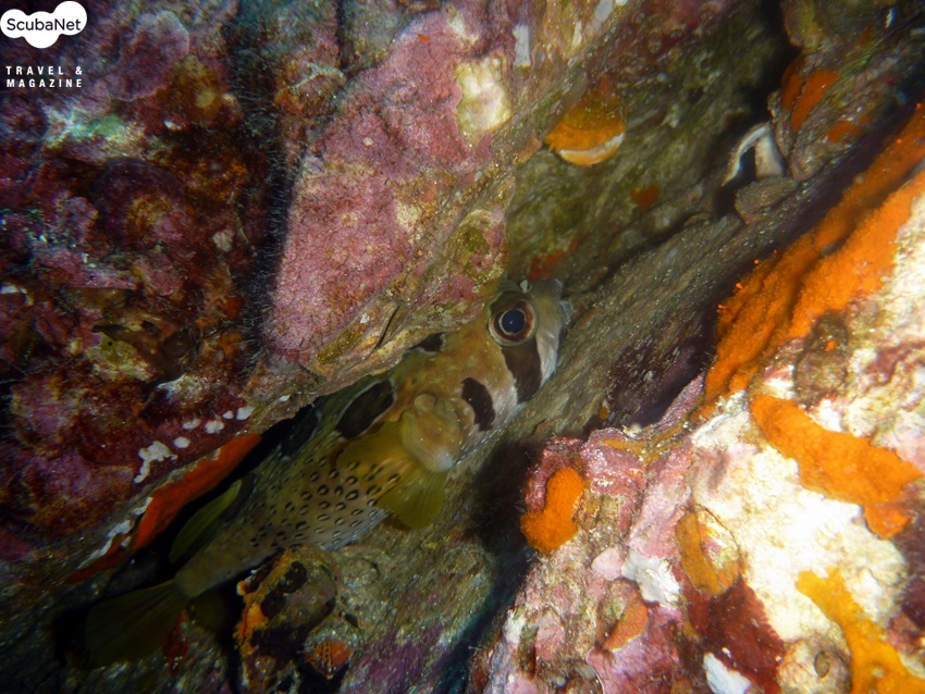 이곳에서는 화이트 팁이나 실버 팁 리프 샤크, 불 샤크, 이글레이와 높은 확률로 만타레이를 볼 수 있다. 피너클 주위에는 여러 가지 종류의 곰치와 스콜피온 피쉬, 박스 피쉬, 아네모네 피쉬, 복어, 버터플라이 피쉬, 스위트립, 누디브랜치 등을 비롯한 물고기들이 살고 있고 멀리 대해 쪽에는 레인보우 러너와 바라쿠다 등이 멋지게 스쿨링을 하고 있다. 시선 가는 곳마다 볼거리가 있어서 다이빙 내내 심심함을 느낄 수 없었던 곳이다. 종종 고래상어가 나타나기도 한다니 마크로와 와이드 모두를 충족시켜주는 최고의 포인트라고도 말할 수 있을 것 같다.다섯번째 날. 미얀마 리브어보드 트립도 슬슬 막바지에 접어들면서 전날 다이빙했던 블랙락을 뒤로 하고 보트는 다시 남쪽, 까우따웅으로 향했다. 이 날 다이빙한 곳은 노스 트윈 피너클과 팬 포레스트 피나클, 웨스턴 록키 포인트였다.