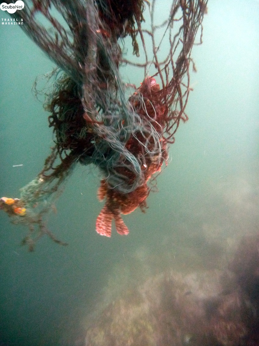 버려진 밧줄들/바닥의 폐그물에 걸려 있던 스콜피온 피쉬, 그물에서 꺼내 준 후 그물은 밖으로 가지고 나왔다