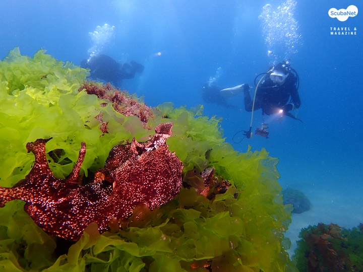 두 번째 다이빙은 얕은 수심의 바위 주위에는 온통 모래뿐인 사막의 오아시스처럼 작은 짬을 돌아보았다. 한 바퀴를 도는데 10분도 채 안 걸려 한 바퀴를 돌아보고, 돌아본 자리를 다시 또 되돌아보았다. 그래서 그랬는지 다이빙 사이트의 이름도 오아시스였다. 수심은 5m~ 6m, 햇살이 너무나 잘 비춰주고 시야도 마치 내가 남태평양의 깨끗한 바닷속에 있는 듯한 착각을 일으킨다. 사진을 찍는데 멀리 있는 다이버의 모습이 거추장스러울 만큼 카메라의 뷰 파인더에 들어온다. 1시간이라는 다이빙 시간이 언제 갔는지도 모른 체, 그렇게 다이빙을 하였지만 아직도 100바의 공기가 여유 있게 남아 있었다. 모두들 시간이 가는 줄도 모르고 다이빙에 열중한다. 요 근래 보기 드물었던 맑은 시야였다. 파란 물속에서 녹색 해조류들은 자신들이 입은 옷의 색깔이 더 예쁘다며 뽐내는 듯했다. 다이버가 지나가면 그 자취에 따라 해조류들은 좌우로 때로는 상하로 하염없이 너울거린다. 군소 한 마리가 다이버들의 방문에도 모든 것이 귀찮다는 듯이 자기 일에만 열중을 하고 있다. 망상어와 작은 볼락의 치어들이 해조 숲을 은신처 삼아 요리 저리 피해 다니지만 숨바꼭질의 술래는 역시나 다이버들이다. 일부는 사진 찍기에 정신이 없고 일부는 그 사진의 주인공이 되고 싶어서 서로들 찍어 달라고 한다. 수면 위에 눈부시게 밝고 맑은 햇살과 눈을 마주쳐 본다. 머리 위에서 빛나는 태양을 등지고 자세를 잡아 준다. 얼굴을 더 예쁘게 해 주고 싶지만 마스크에 가려진 모습들에 사진을 찍다가도 웃음이 절로 난다. 똑같은 지형을 몇 번을 돌아보았을까? 이제 슬슬 올라 갈 준비들을 한다. 멀리서 공기방울이 올라가면서 퍼지는 모양도, 상승하자고 수신호에 맞춰서 손가락을 치켜 드는 모습도, 그리고 다양한 녹조류들과의 아쉬운 작별도 그저 물속에서 일어나는 소소한 일상 같지만 머리에만 담기에 아름답고 아름다운 모습이었다.