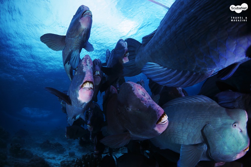 서둘러입수를하니가이드가수중의골짜기를향해달려간다. 골짜기에잠을자던범퍼헤드패럿피쉬들이부스스일어나하나둘출근을시작한다. 한마리, 두마리그러다떼를이루어‘우두두두두두’소리를내며달려간다. 실제소리를내지는않았지만그모습에서‘우두두두두두’하는소리가들리는듯했다.