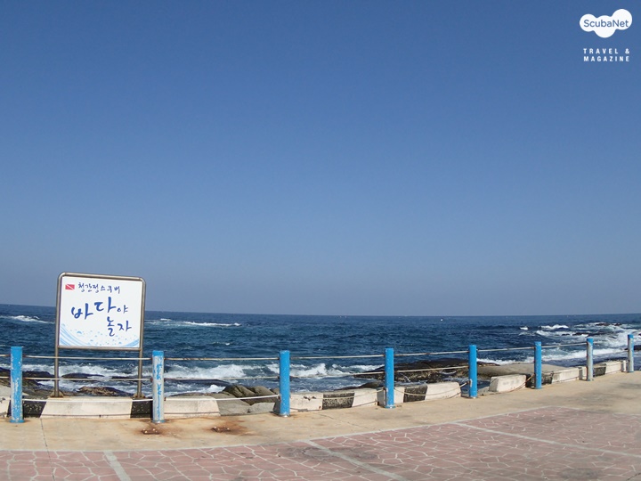 그 청간정 아래에 조용하고 그리 크지 않은 아담한 해변이 길게 자리 잡고 해안가 한쪽 끝으로 '바다야 놀자' 라는 간판을 달고 있는 청간정 리조트가 있다. 내가 이곳을 좋아하는 이유는 언제나 화려한 '부채뿔산호'를 마음껏 눈으로 담을 수 있기 때문이다. 이 곳은 약 10군데의 다이빙 포인트가 있는데 첫 다이빙은 '나로도'로 향했다. 수심 20m 정도에