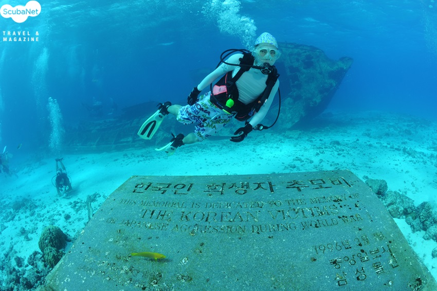 난파선 앞에서 2차대전 때 끌러와 억울하게 돌아가신 한국인 희생자들을 위한 추모비가 있다.