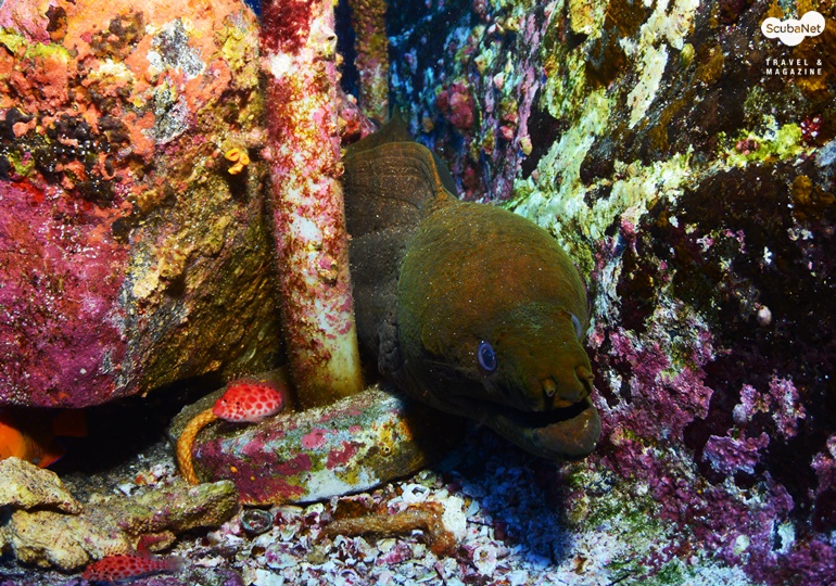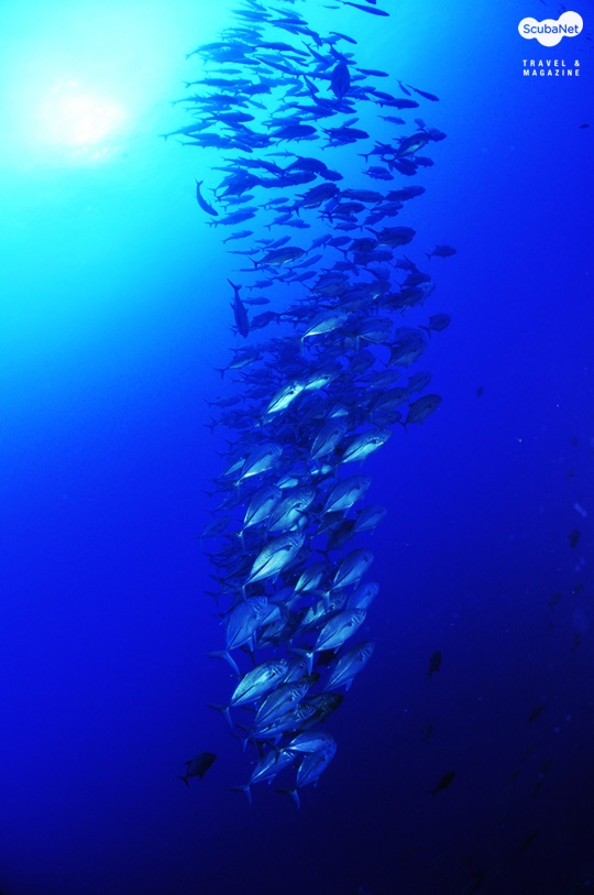 수 있었다. 엄청난 무리의 잭피쉬들과 전갱이과 어류들 그리고 깃대돔 무리와 나비고기 무리, 곰치와 스콜피온피쉬, 바닷가재 무리 등도 보았다. 조류가 강한 곳이라고 했지만 조금 때라서 그런지 조류는 크게 느끼지 못하였다.