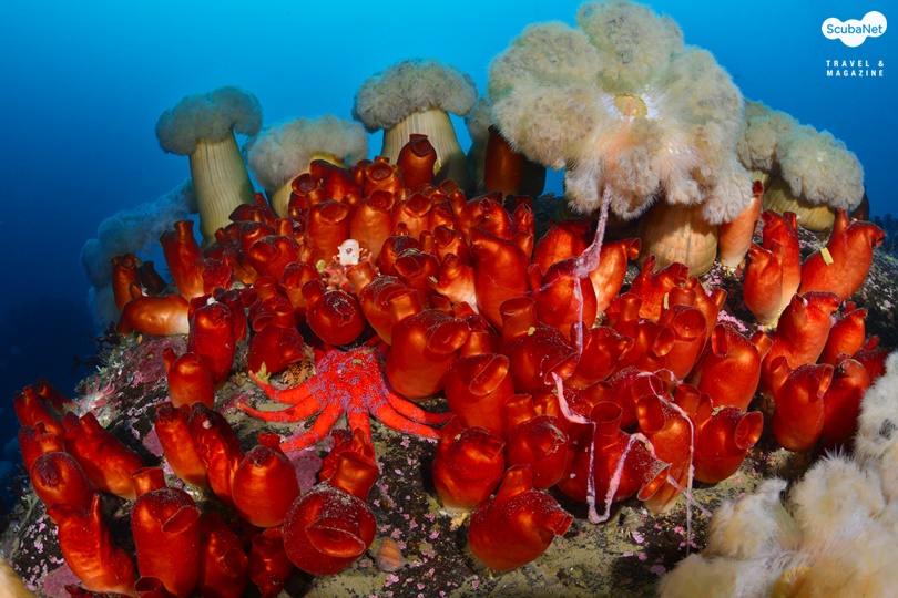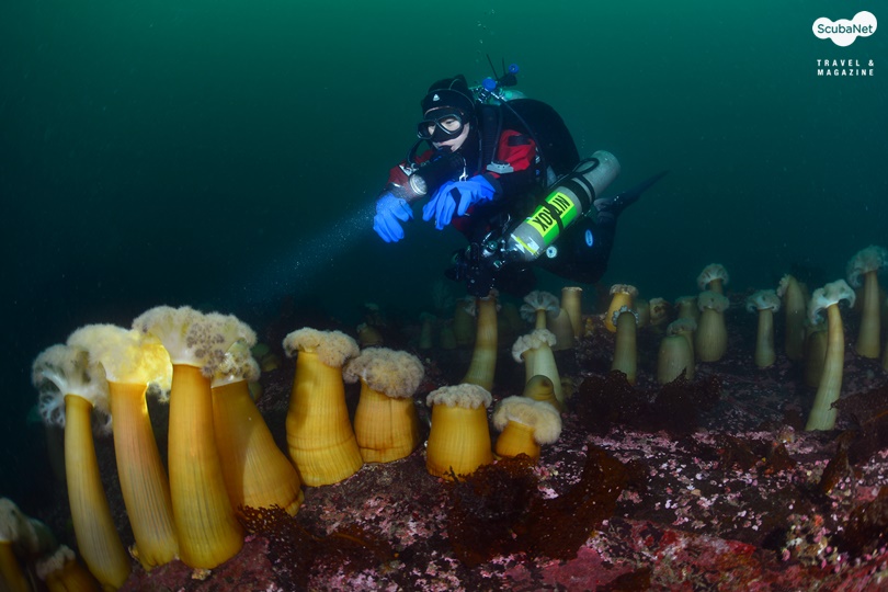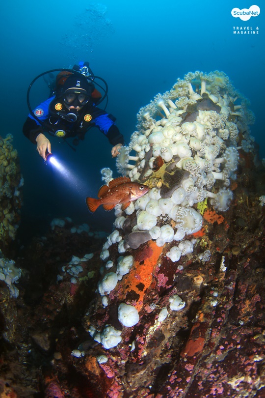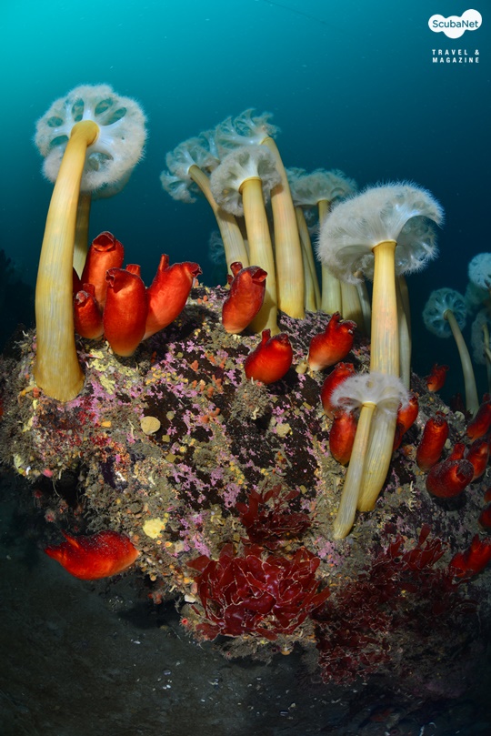내려가보면 멀쑥하게 키 자랑을 하고 있는 섬유세닐말미잘들의 자태를 마주할 것이며 차디찬 수온에 힘찬 호흡을 하고 있는 우렁쉥이도 풍요로운 모습으로