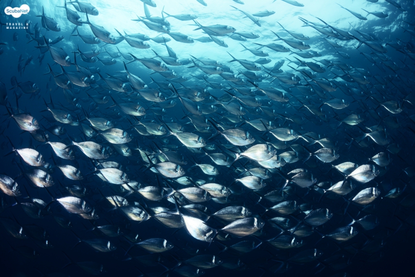 귀상어 무리와 울프 섬 Schooling Hammerhead Sharks and Wolf Island