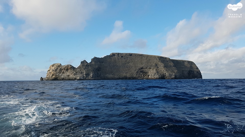 새벽에 울프섬을 출발하여 다윈섬에 도착해서 다윈 아치에서 다이빙을 진행했다. 항해 중 처음으로 다른 리브어보드와 조우를 했는데 갈라파고스 어그레서 III 였다. 첫 다이빙을 우리가 먼저 나갔는데 배 위에서 손을 흔드는 다이버들이 일본 팀으로 보였다.