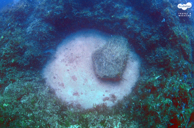 있다. 수심 20m 내외의 바닥에서 수심 10m 내외의 꼭대기까지 봉우리들이 나란히 기차처럼 연결되어 있어서 기차바위라고 한다. 물때가 바뀌어 썰물이라 연산호들은 움추려 들어 있었지만 자리돔 떼가 우리 일행을 맞이해 주었다.
